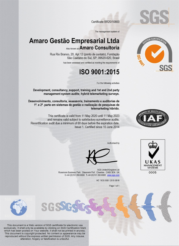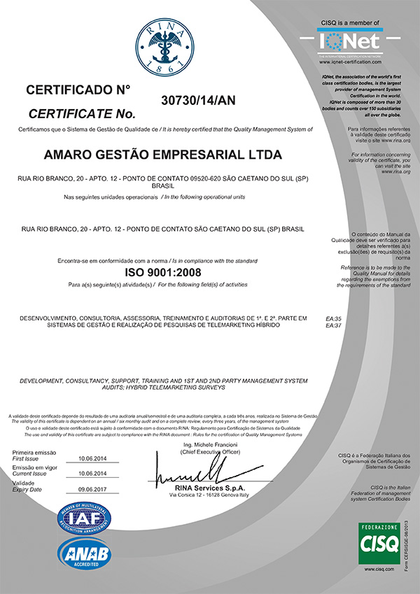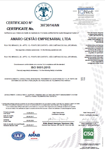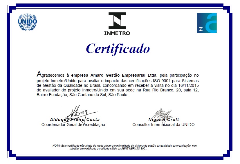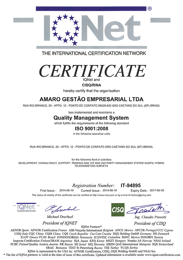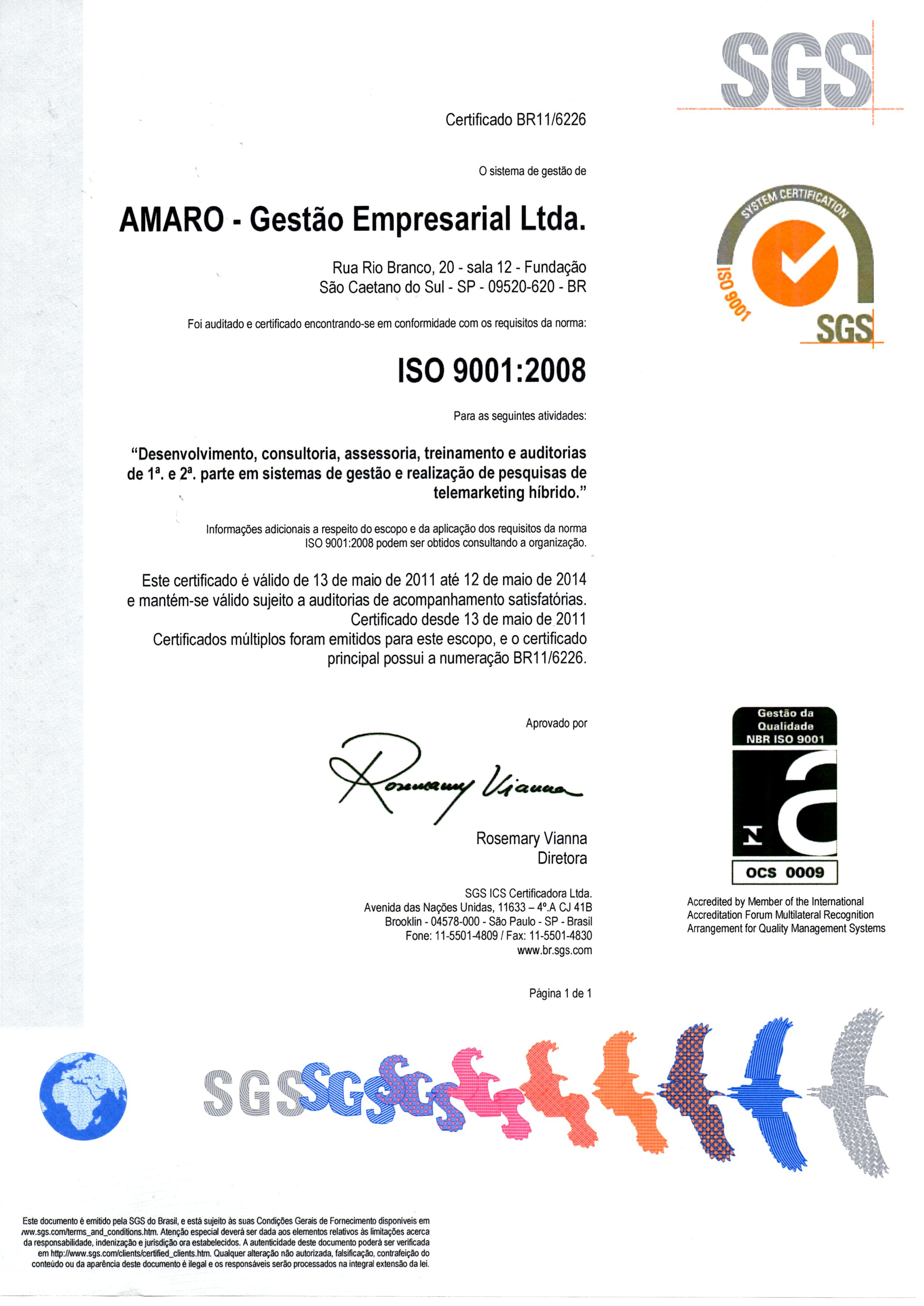 Certificado ISO-9001:2008 da AMARO