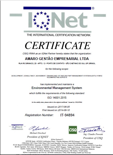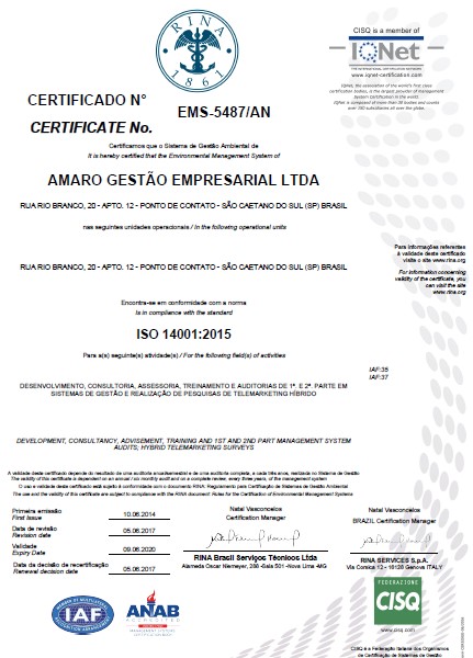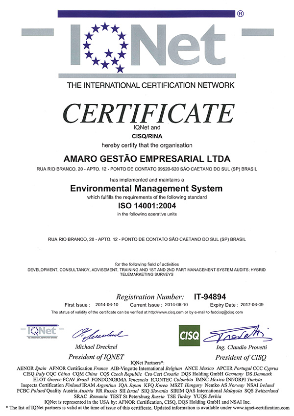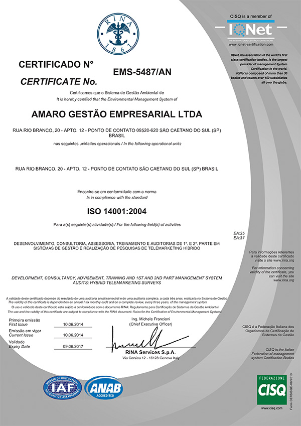 Certificado ISO-14001:2004 da AMARO