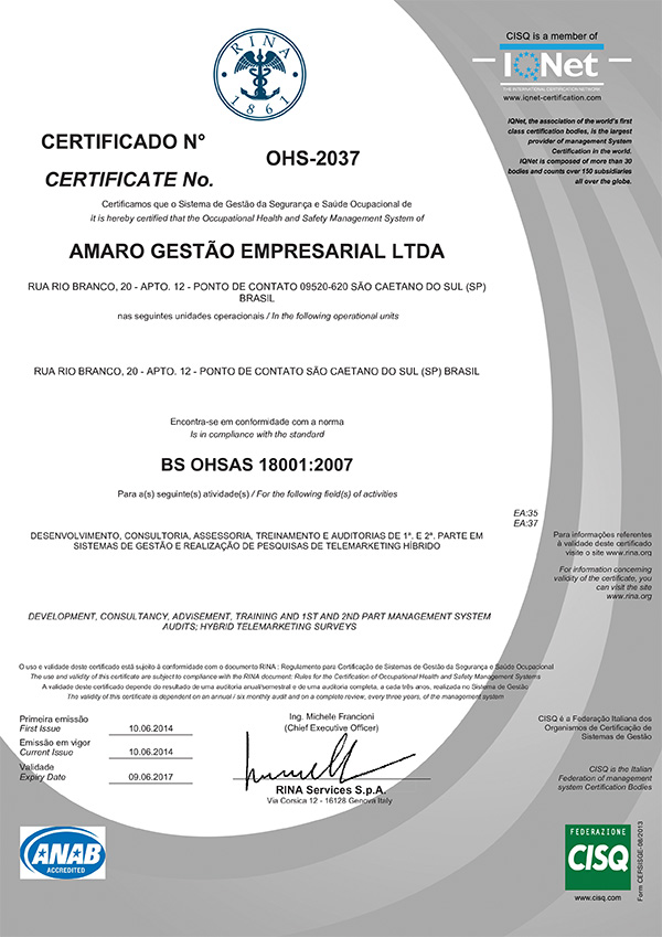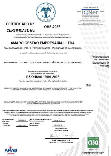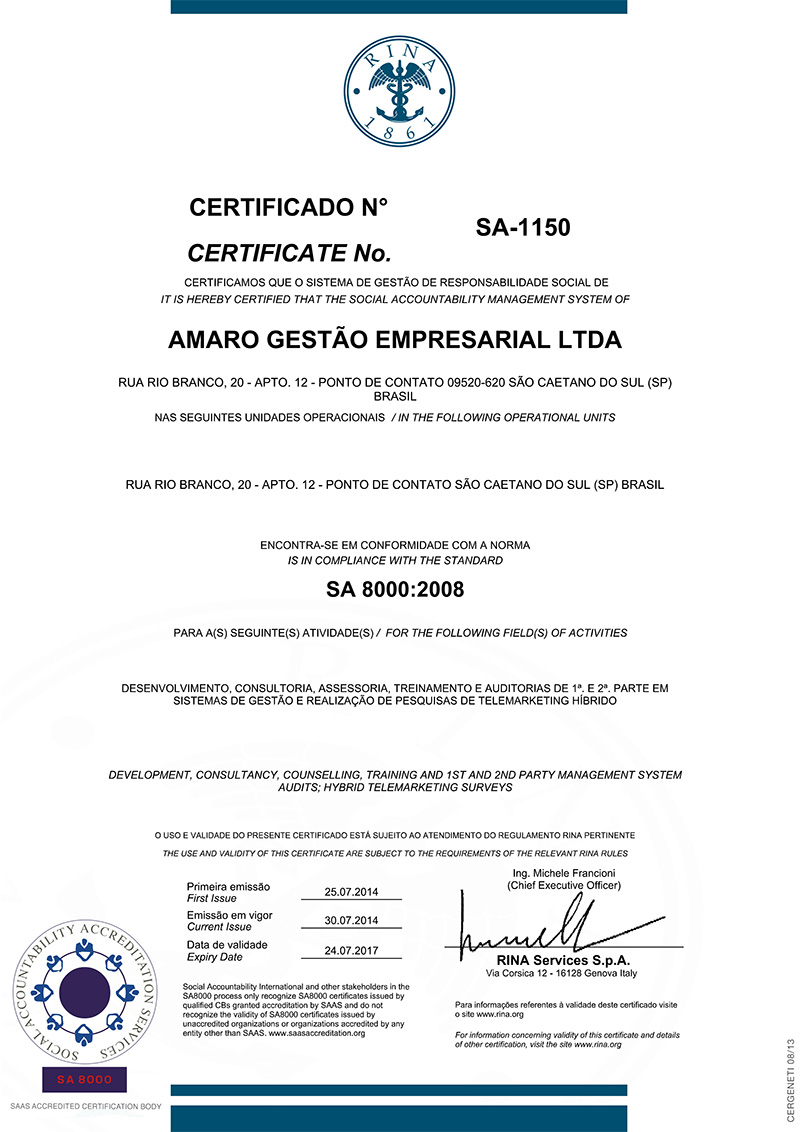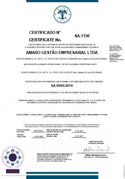 SA 8000:2014 - RINA (Cancelada em dezembro/2019)
