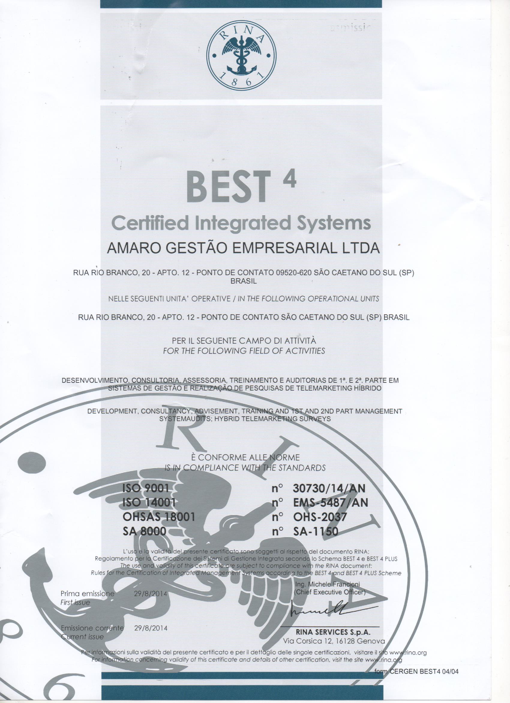 Best 4 - Certified Integrated Systems - RINA