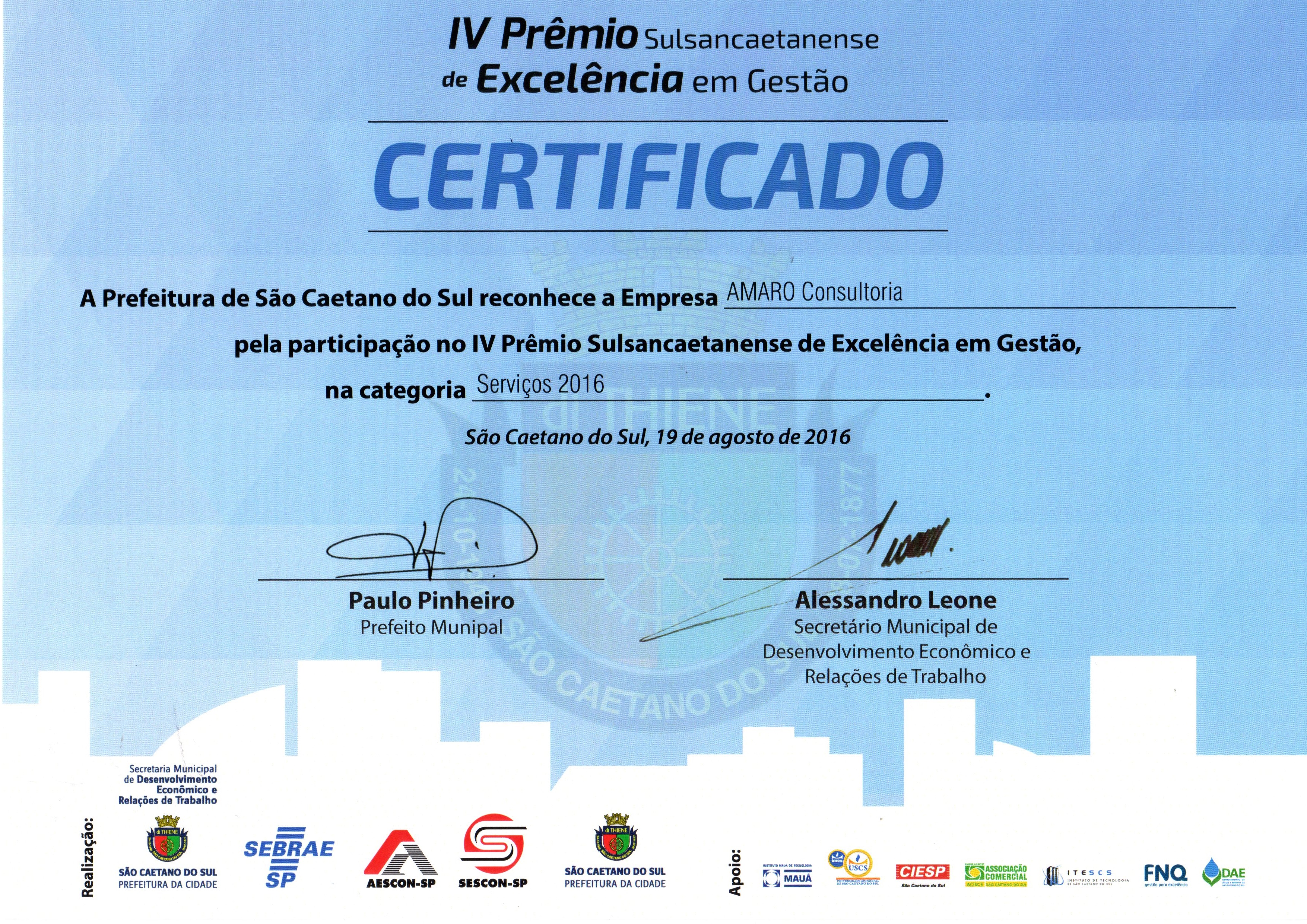 IV Prêmio Sulsancaetanense de Excelência na Gestão